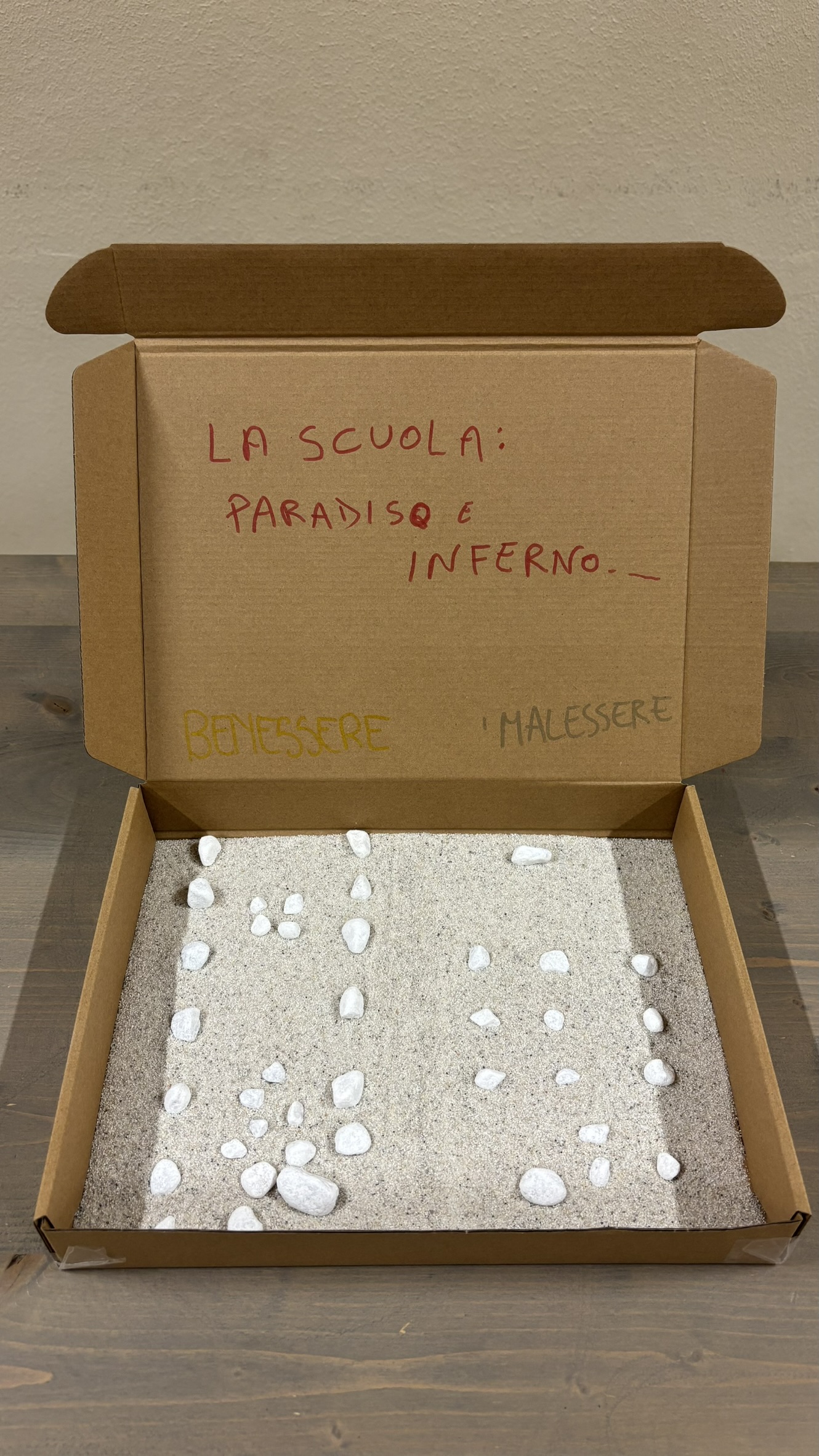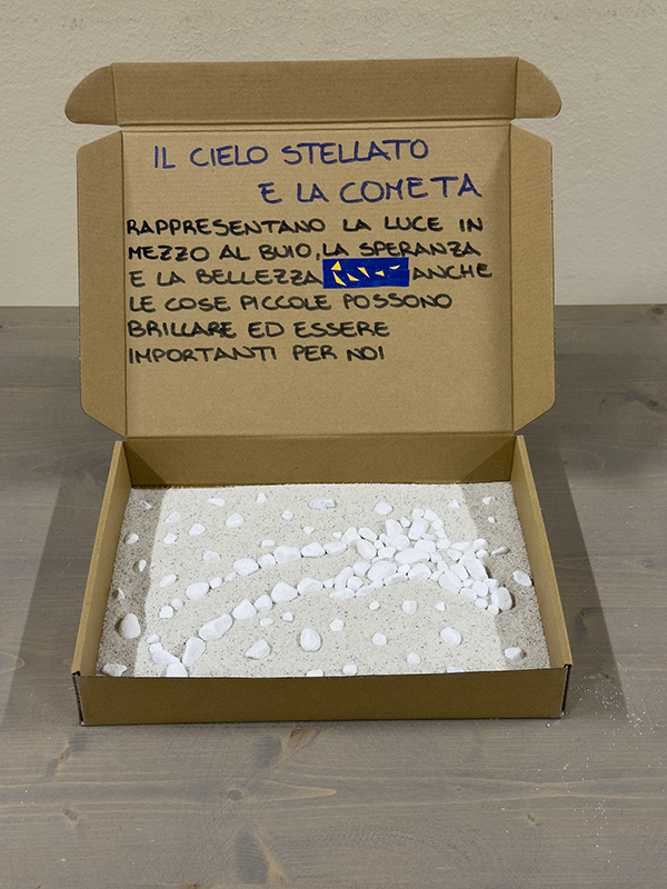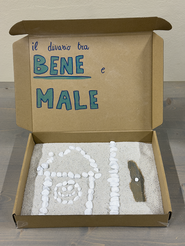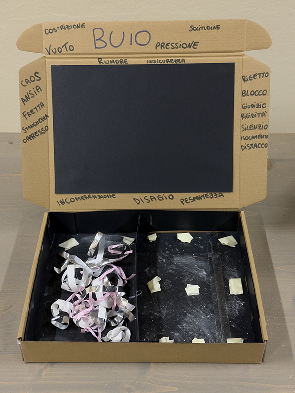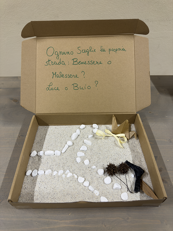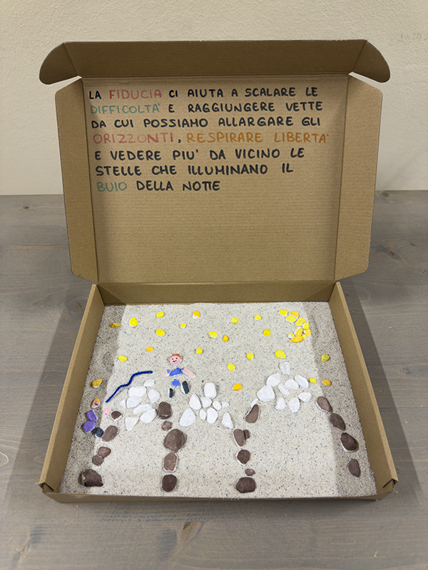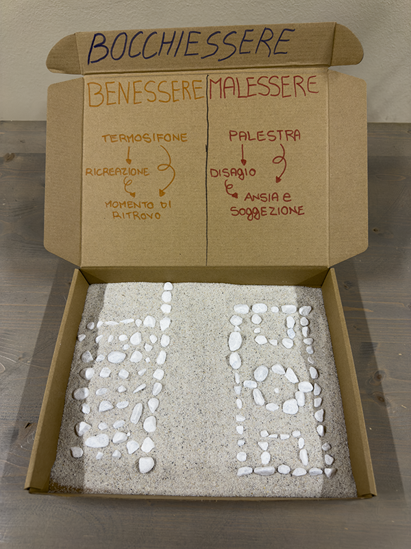 Utilizzando scatole di cartone, sassi bianchi, tempere, carta colorata, forbici e pennarelli, i ragazzi, insieme agli insegnanti, hanno costruito piccoli elaborati tridimensionali capaci di restituire il vissuto degli ambienti scolastici. Sono nate così rappresentazioni che raccontano la scuola come luogo fisico, ma anche come spazio emotivo e relazionale, in grado di incidere profondamente sul benessere di chi lo abita.